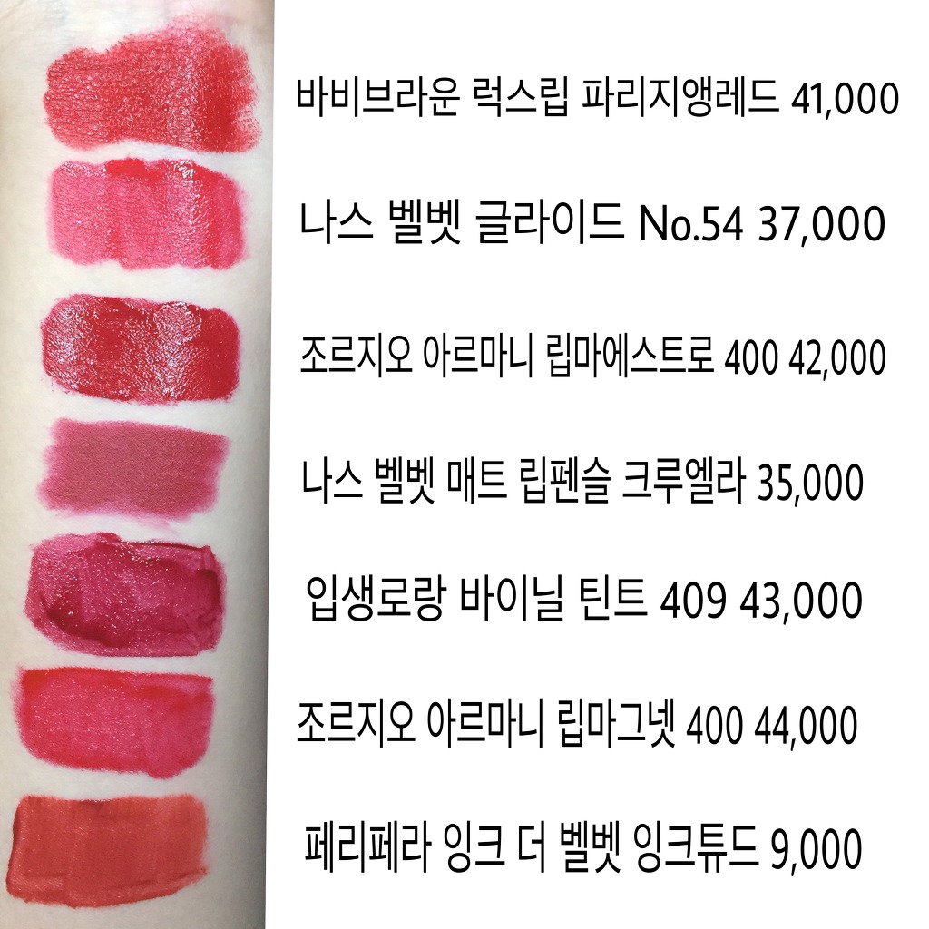 개인적으로 좋아하는 순으로 발색 했어 의도치 않게..ㅎㅎ 파리지앵레드 제일 좋아함!