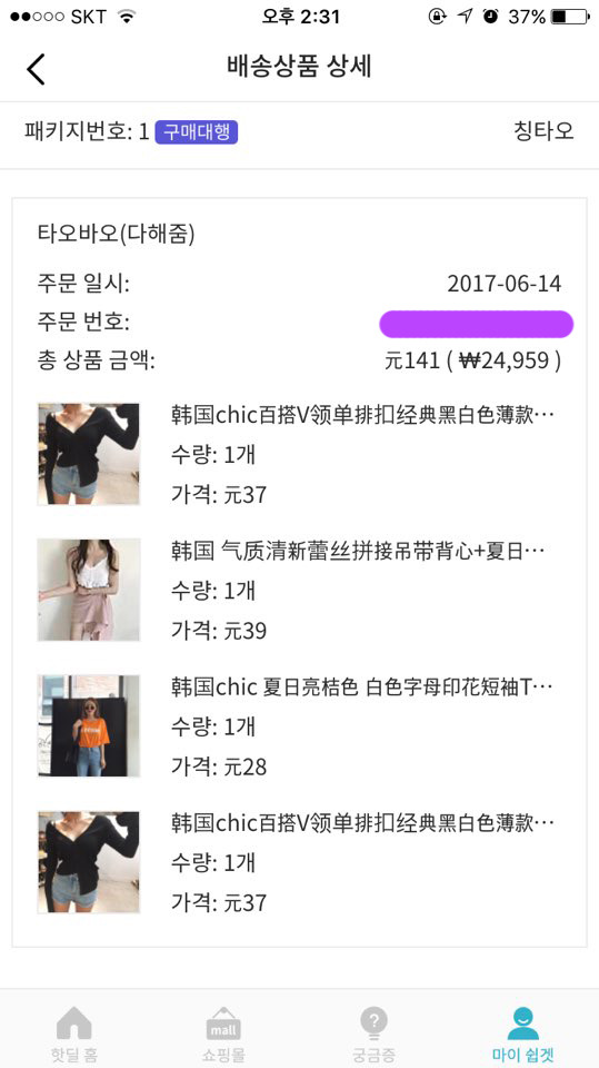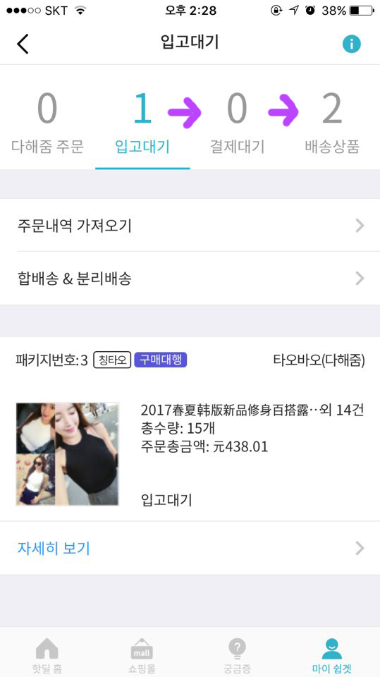 (결제하라고 문자와!) ->배송상품으로 넘어가면 중국에서 내 집으로 배송 궈궈~