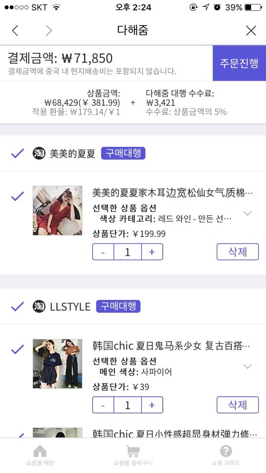 나는 옷만 10개샀구, 결제금액은 7-8만원 선이였어~