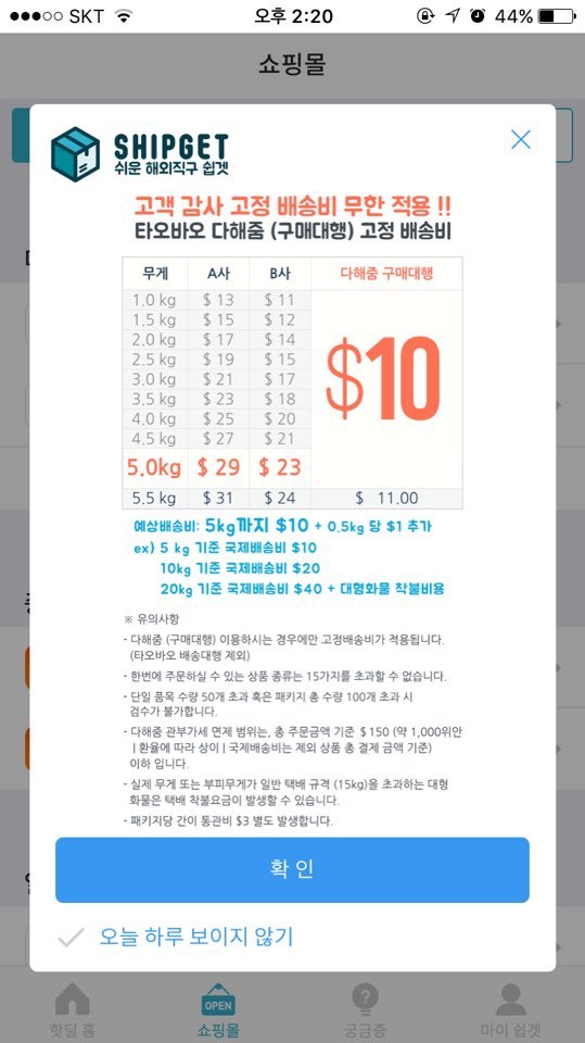 쉽겟은 5kg까지 $10 + 통관비 $3 = 한번주문할때 배송비 $13이라 생각하면됭!