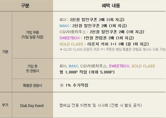 4DX, 아이멕스, 스윗박스 등 특별관 관람을 할 때 할인혜택을 주는 회원제 클럽 서비스야!
