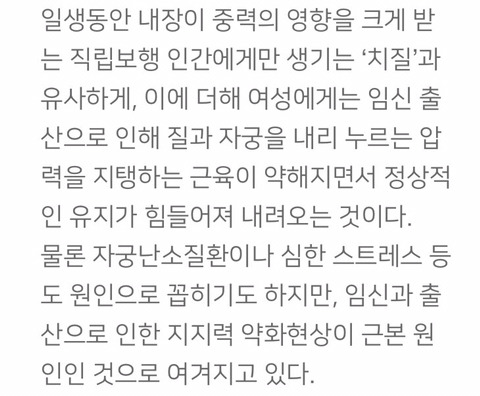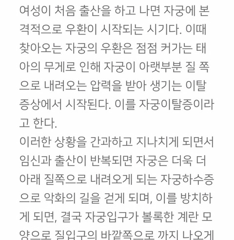 " 여성이 처음 출산을 하고 나면 자궁에 본격적으로 우환이 시작되는 시기다. "