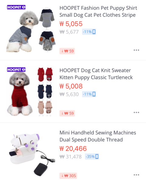 강아지 옷이랑 미니 재봉틀(걍 관심있어서 담아봄)