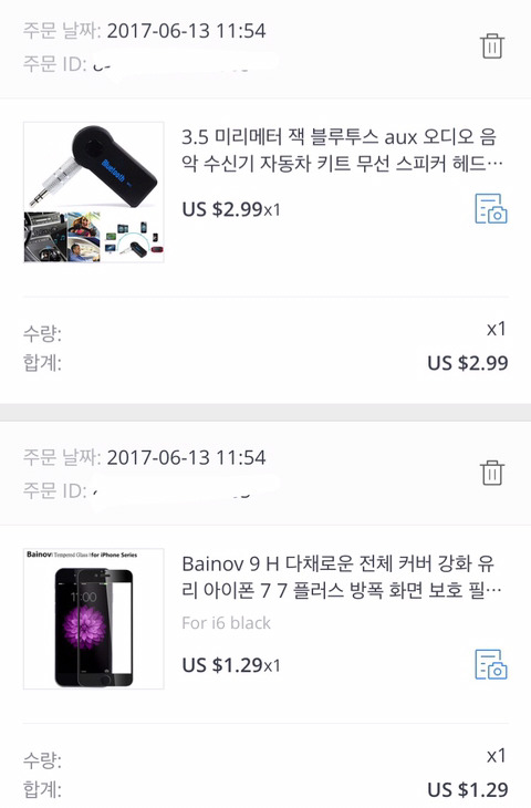 (품목별로 사진첨부해서 주문 날짜는 순서순 아냐)