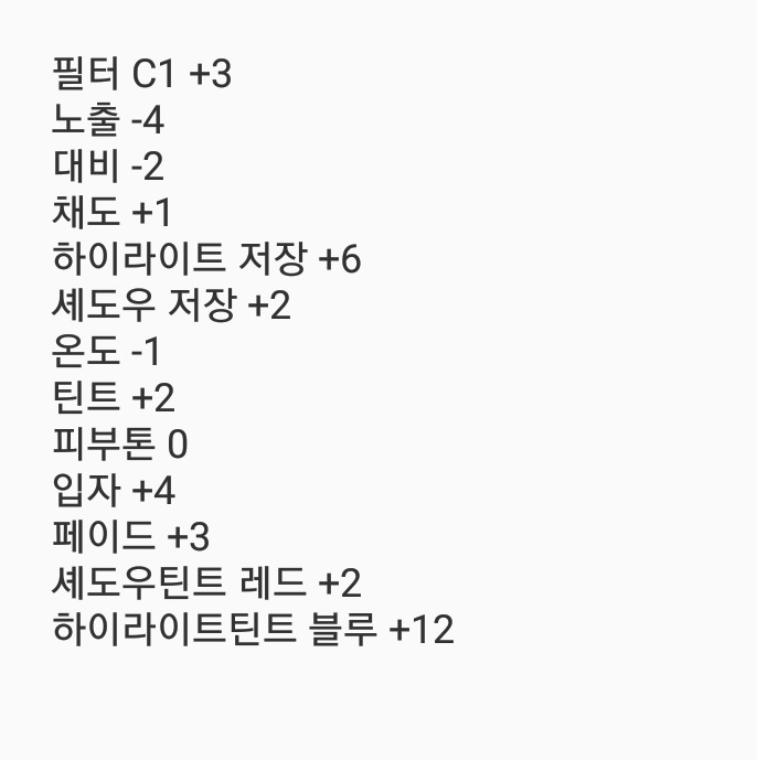 • 채도에 따라 느낌 즨쨔 달라져서 올릴거면 +1만 하는 걸 추천 한다.
