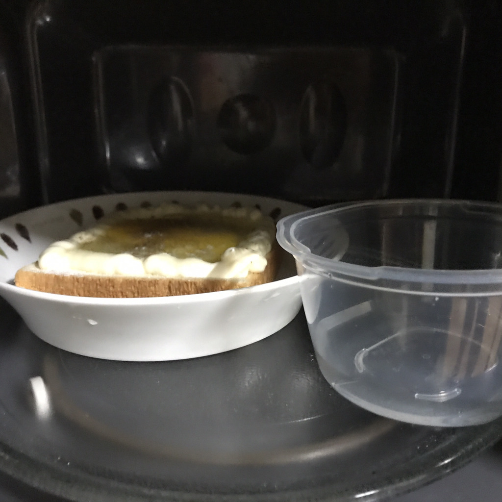 그리고 마계토를 전자렌지에 2분 돌려주는데 그냥 돌리면 식빵이 수분을 뺏겨서 퍽퍽하다 그래서 물담은 컵이랑 같이 돌려주는데 저거랑 같이돌리면 또 너무 촉촉하더라고. 약간 빠삭 해야 마싯자나. 그래서 나의 꿀팁(?) 1분은 물담은 컵 넣은채로 돌리고, 남은 1분은 컵 빼고 마계토만 돌려라. 사실 이게 효과가 있는지는 모르겠지만 난 이렇게해서 맛있게 먹었다.