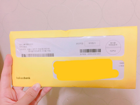 카카오뱅크란 신문물을 발견하고 흥분의 도가니를 일며 신청을 했는데 이 요물이 정확히 2주가 되니 도착하더군요.
