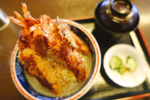 여기는 다른 거 먹는 분들도 많은데 나는 스프카레를 원래 계획대로라면 마지막날 먹는 거고, 카레우동은 그다지 좋아하지 않기도 해서 원래 제일 좋아하는 새우튀김덮밥인 에비동을 시켰어. 새우만 있는 게 아니라 추측하건대 고구마랑 가지튀김인 것 같았어. 고구마가 진짜 맛있었고, 나는 원래 가지 안 좋아하는데 맛있더라! 확실히 새우튀김은 좀 짜긴 짰는데 고구마튀김이랑 밥이랑 같이 먹으니까 괜찮았어. 얘는 880엔. 메뉴판 번호는 13번이야.