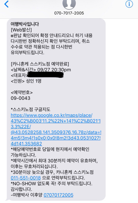 위에 일정표 보면 아침 8시부터 저녁 8시까지, 12시간이 걸리는 투어 일정이야. 그런데 내가 위에 시간 메모한 거 보면 조금 차이가 있어. 아래에 문자 온 것들도 첨부하겠지만 예약하고부터 제일 많이 본 게 미팅 시간에 늦지 말라는 거였거든? 그런데 이날 내가 07:45분에 도착했는데 이미 투어 참여하는 분들 2/3이 도착해서 버스에 탑승 중이었고, 모두들 8시 되기 전에 도착해서 딱 제 시간에 출발했어. 삿포로 다시 도착한 것도 19:30분도 되기 전인 심지어 한 시간이나 일찍 도착했지. 가이드가 출발하면서도 시간 지켜 주셔서 감사하다고 했고, 삿포로로 출발할 때도 다들 시간 잘 지켜 주셔서 일찍 끝났다며 거듭 감사하다고 하더라