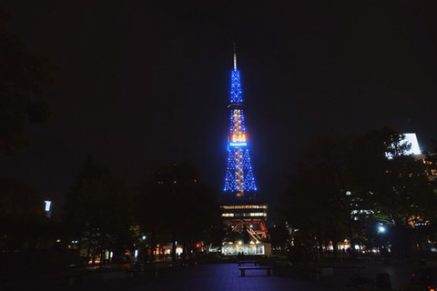삿포로로 돌아오니 이미 해가 진 후였고, 비도 조금씩 오는 상황이었어. 예상 시간보다 일찍 도착해서 원래는 저녁 먹고 관람차 타려고 했는데 비가 더 많이 내리기 전에 관람차부터 타러 가야겠다 싶어 이동! 테레비 타워 모습부터 찍고!