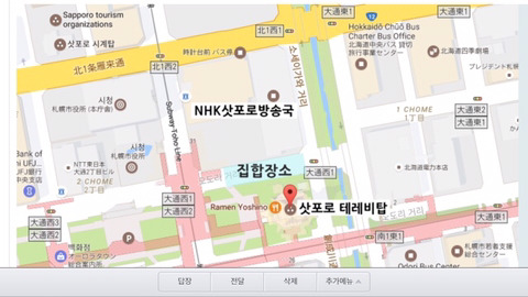 위는 바우처에 첨부된 지도거든. 삿포로 테리비탑 을 도착 장소로 구글 맵에 찍고 가면 쉽게 찾을 수 있어. 대형 버스가 딱 서 있으니까!