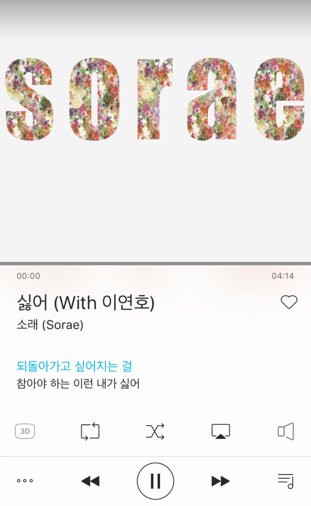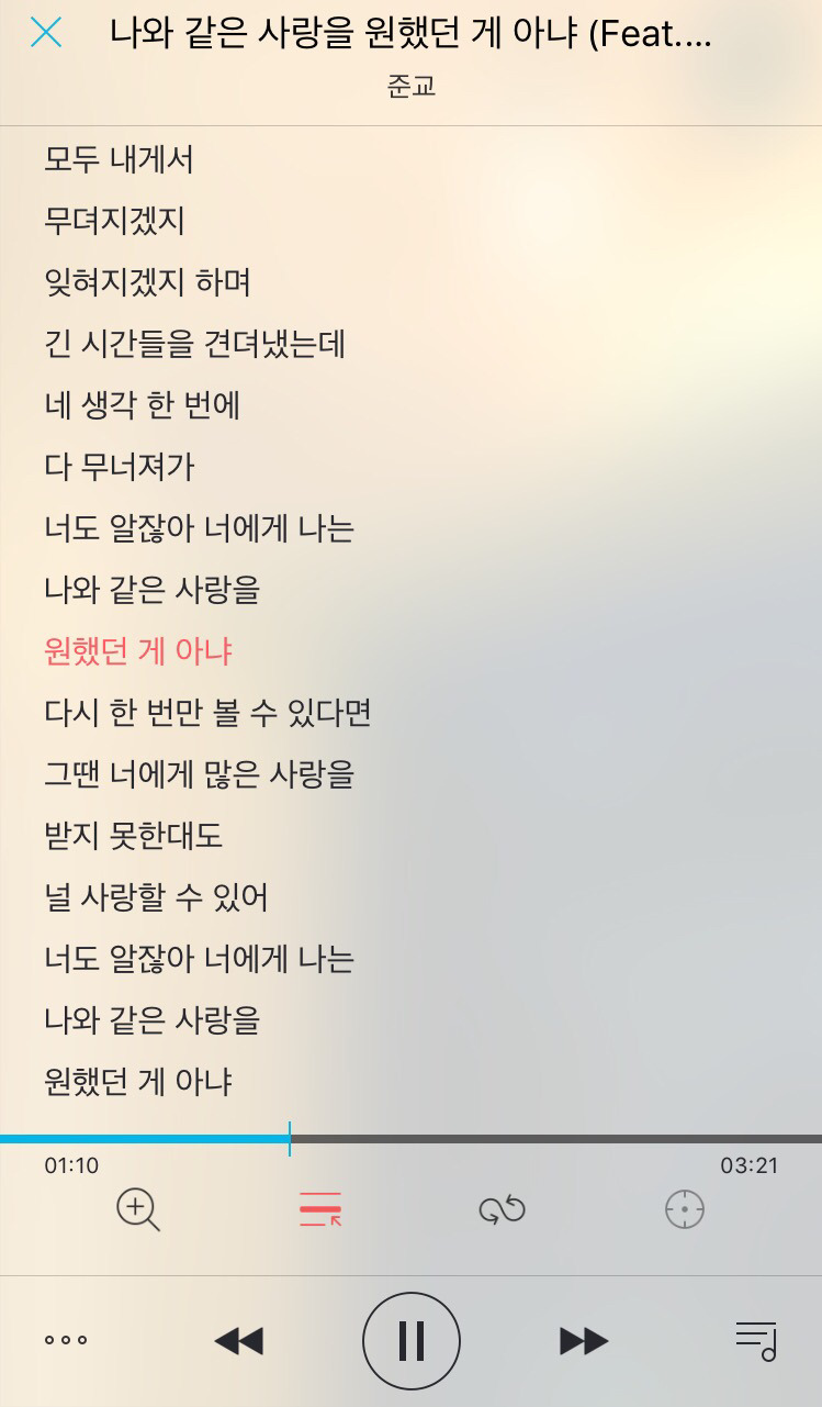 이건 보컬보다는 가사가 너무 좋아서 바로 담았던 노래야 나는 전남친이 나 오래 좋아해줬는데 그 소중함을 몰라서 헤어지고 후회하는 경우 였거든 그래서 그런지 '그래 그렇구나 돌아섰구나' 이 가사가 너무 맘아프더라ㅠㅠ 내 상황이랑 비슷하다면 꼭 들어봐!
