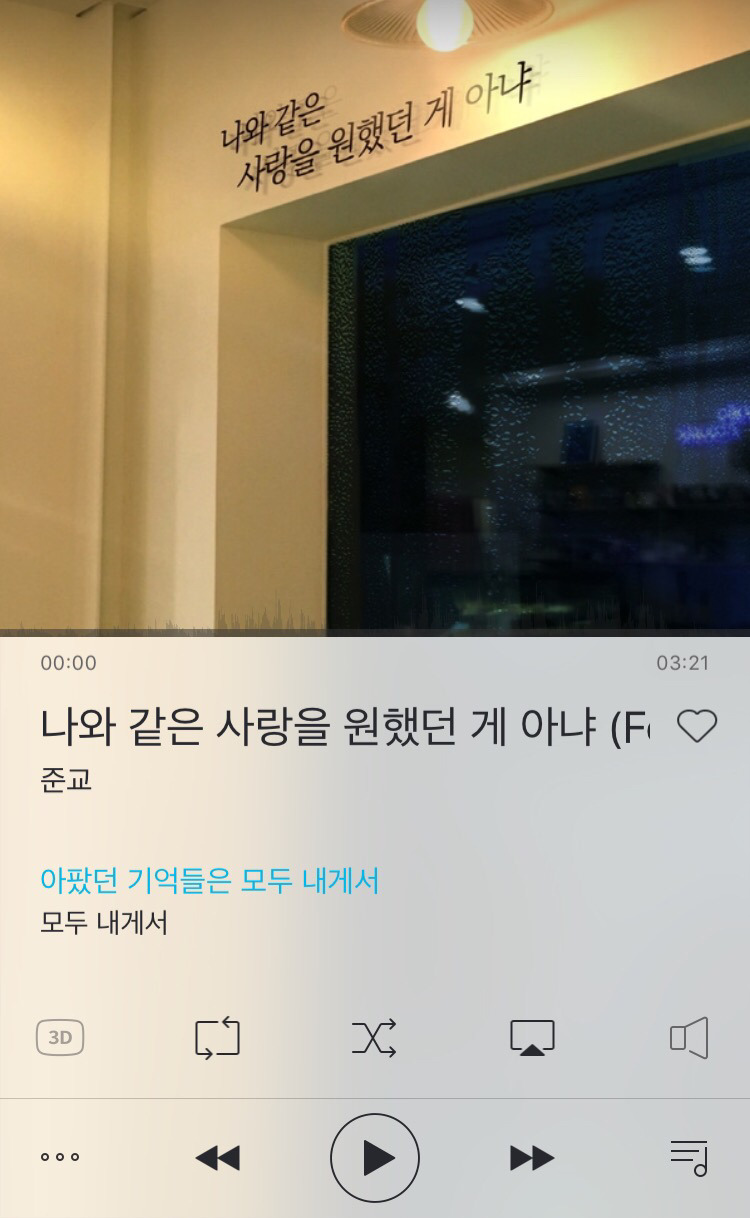 니가 두고가는게 내가 아니고 날 사랑했던 자신을 두고 가는거라는 말이 너무 슬펐어ㅠㅠㅠㅠ 이거 걔랑 연락 완전히 끊기기 직전에 내 카톡 비젬으로 해놨는데 마지막으로 만나서 얘기할때 이 노래 가사가 진짜 쩌네 라고 하더라