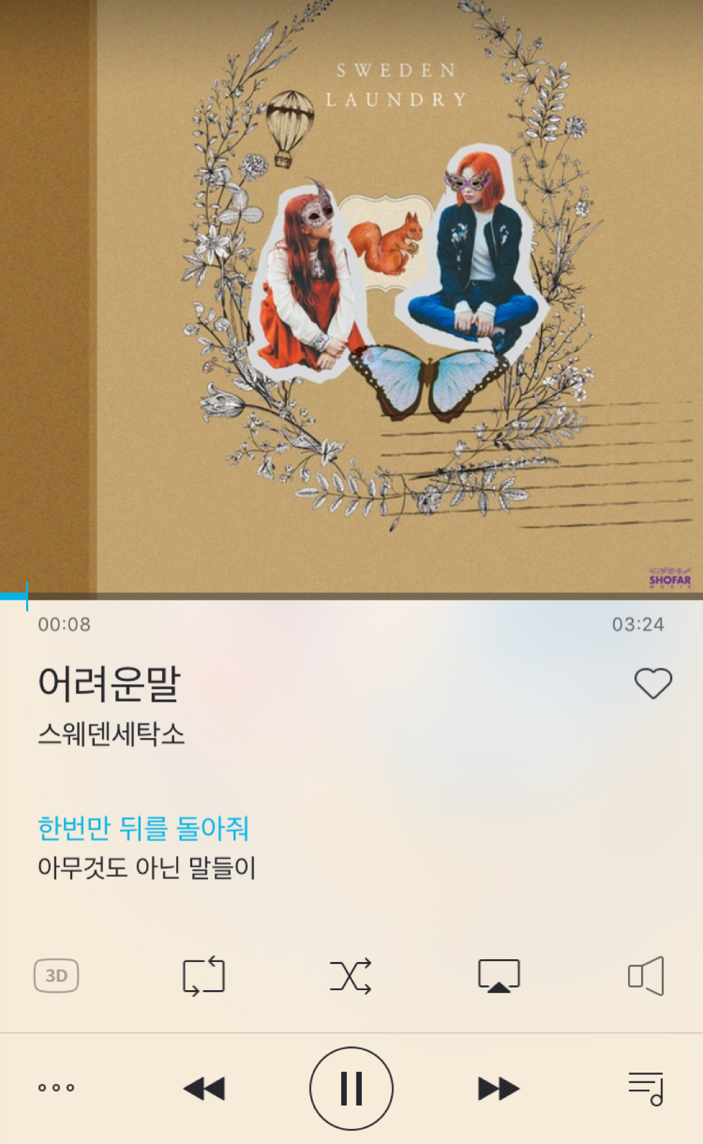 스웨덴세탁소 유명하지만 이 노래는 대부분 잘 모르더라 근 데 이 노랜 진짜 꼭 들어야해 진짜 가사가 너무 대박적이야 난 이거 듣고 엄청 울었어 내가 올려놓은 부분만 봐도 너무 슬프지않냐구.. 첫마디부터 울컥하게 만들어버림 ㅠ 보컬이랑 가사랑 너무 완벽한 조합이라서 더 좋은 노래야
