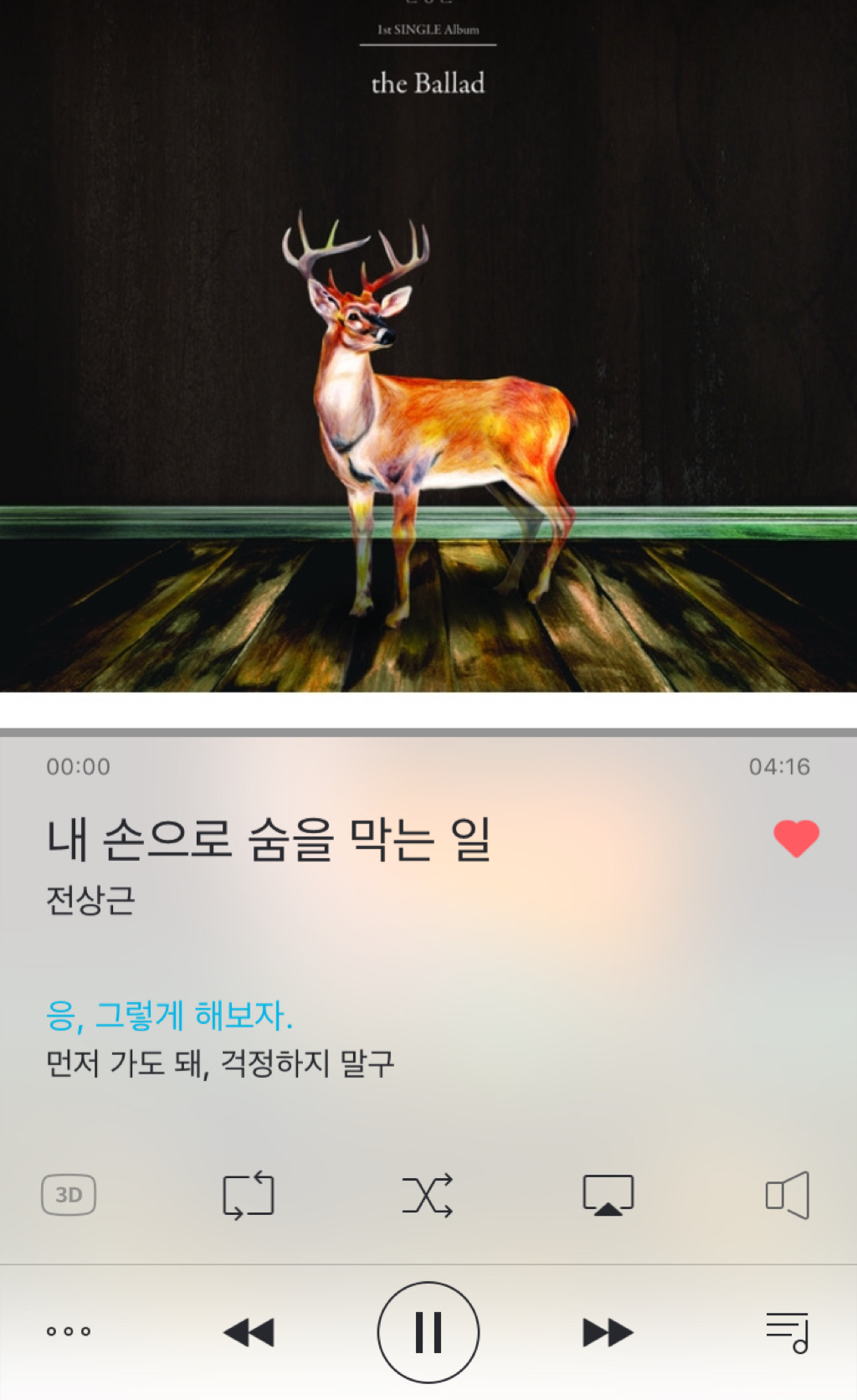 이 노래는 막생에서 추천 받았던 노래인데 진짜 가사가 너무 좋아! 내가 원래 이렇게 가창력을 너무 대박적으로 뽐내는 발라드를 별로 좋아하는편은 아닌데 이건 진짜 좋았어