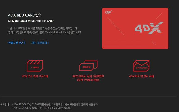 근데 레드카드는 그냥 4DX관이 있는 영화관에서도 구매가능하니까