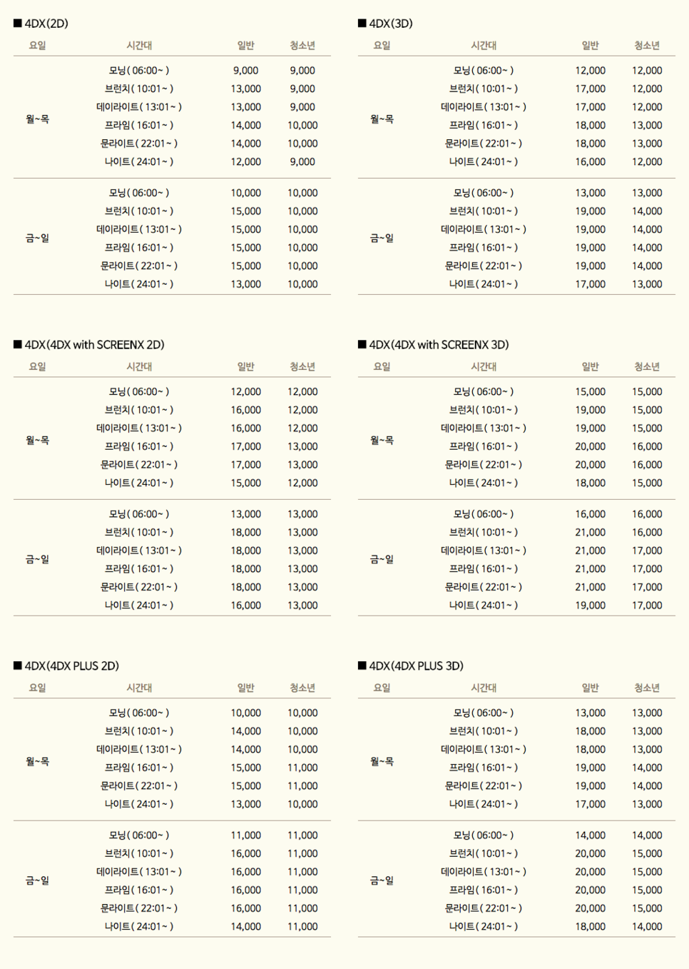 그니까 제일 비싼건 4dx with screen x 3D 황금시간대가 제일 비싸겠지!