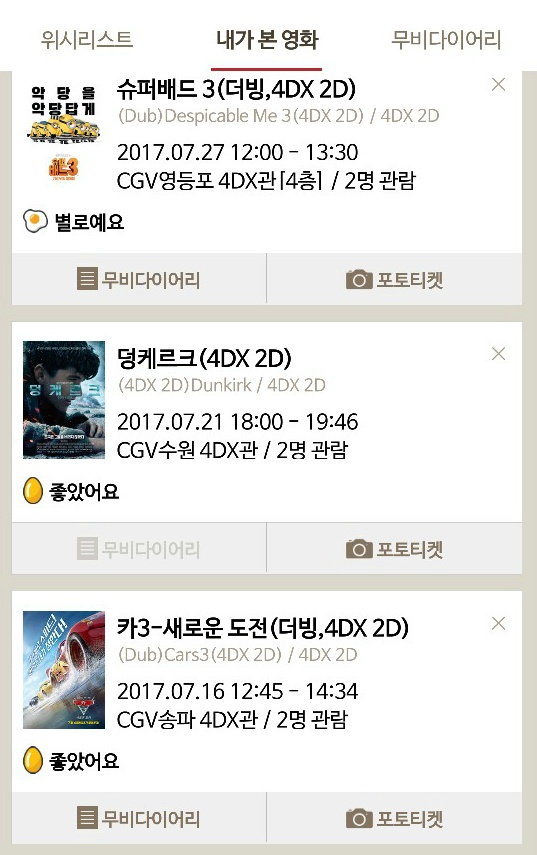 친구데리고 갈때 항상 저걸로 썼어,,,, 4DX로 보기 싫어해서 내가 맨날 돈냄 ㅎ