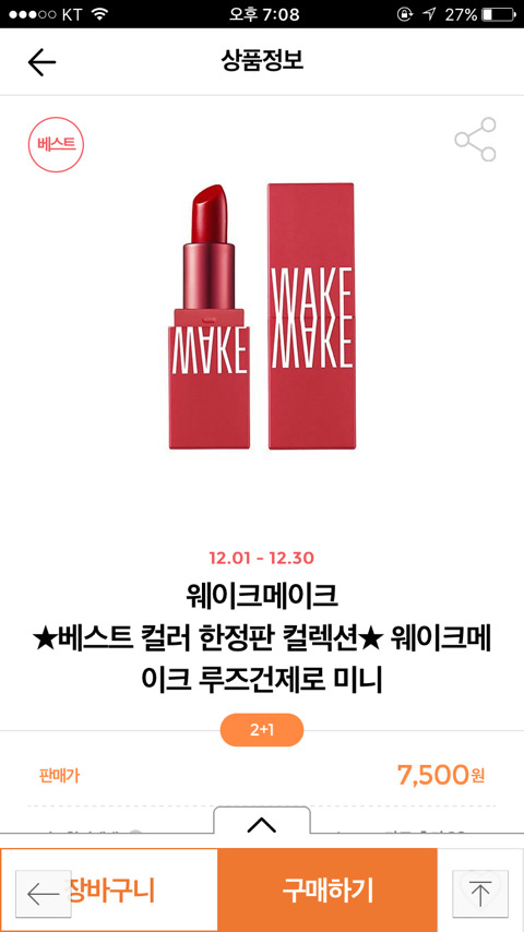[짧생]올리브영에서 웨이크메이크 루즈건제로,수분톡틴트 미니 2+1한다~~~((정품이랑 사이즈비교사진 추가))