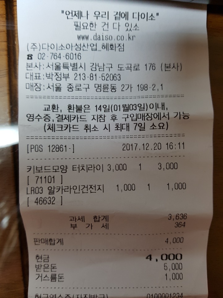 영수증이긔... 잘못보고산 AAA건전즤와 키보드 무드등이긔