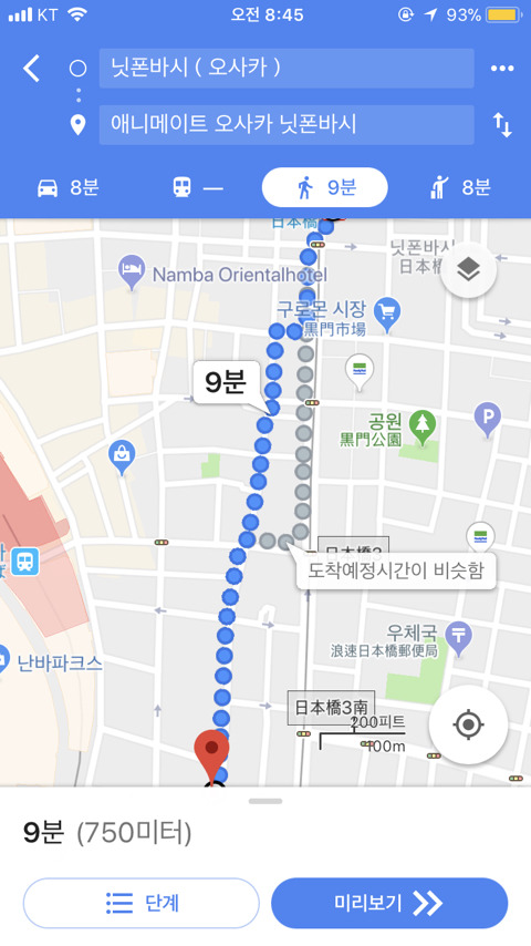 애니메이트건물이랑 덴덴타운은 난바역에서 걸으면 5분