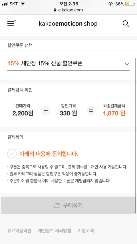 나 사고싶은 이모티콘 있는데 오늘까지 참았다 결제하러간당(^ ^)/