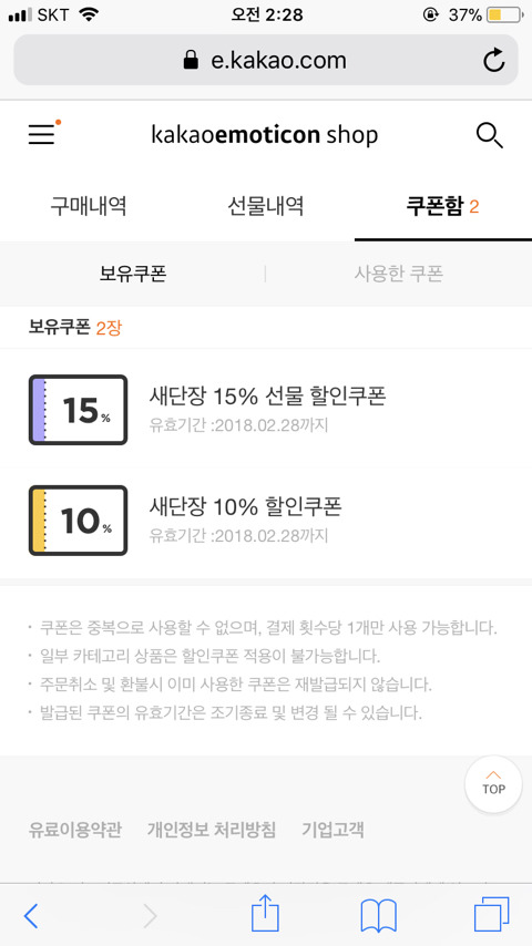 [짧생]다들 빨리 카카오이모티콘샵 로긴해라 ~~~~~ 쿠폰이 두 개나~~~ 띠용 ~~🤗 사고싶었던 이모티콘 사자 ~~🤗 선물도 해주자 ~~🤗