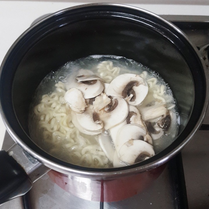나는 파스타 만들고 남음 양송이버섯을 넣어줄꾸양