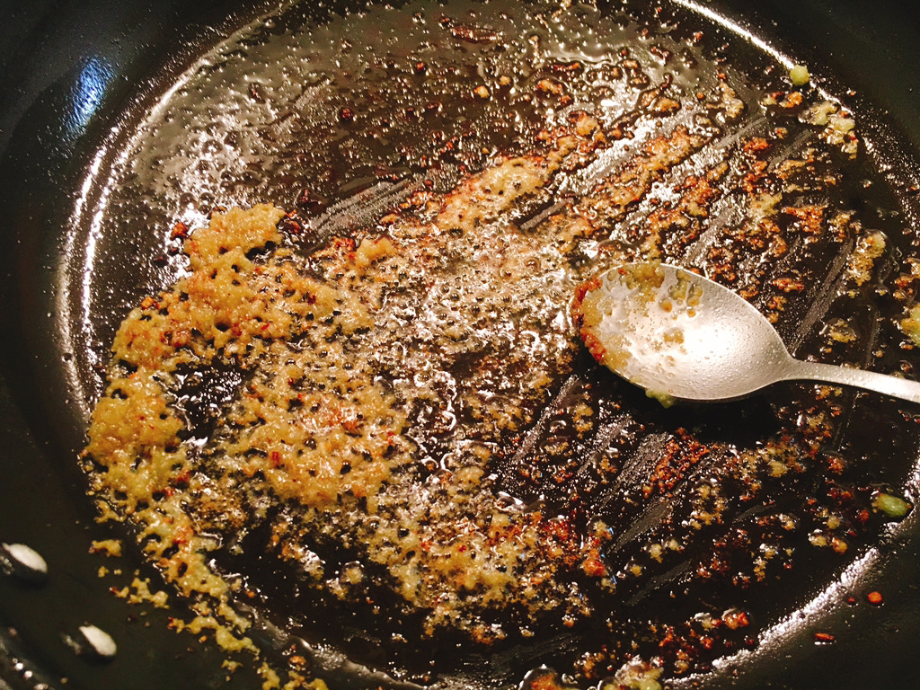 다른 팬에 식용유(올리브유 같은 향 강한 오일 비추)를 넣고 약불~!