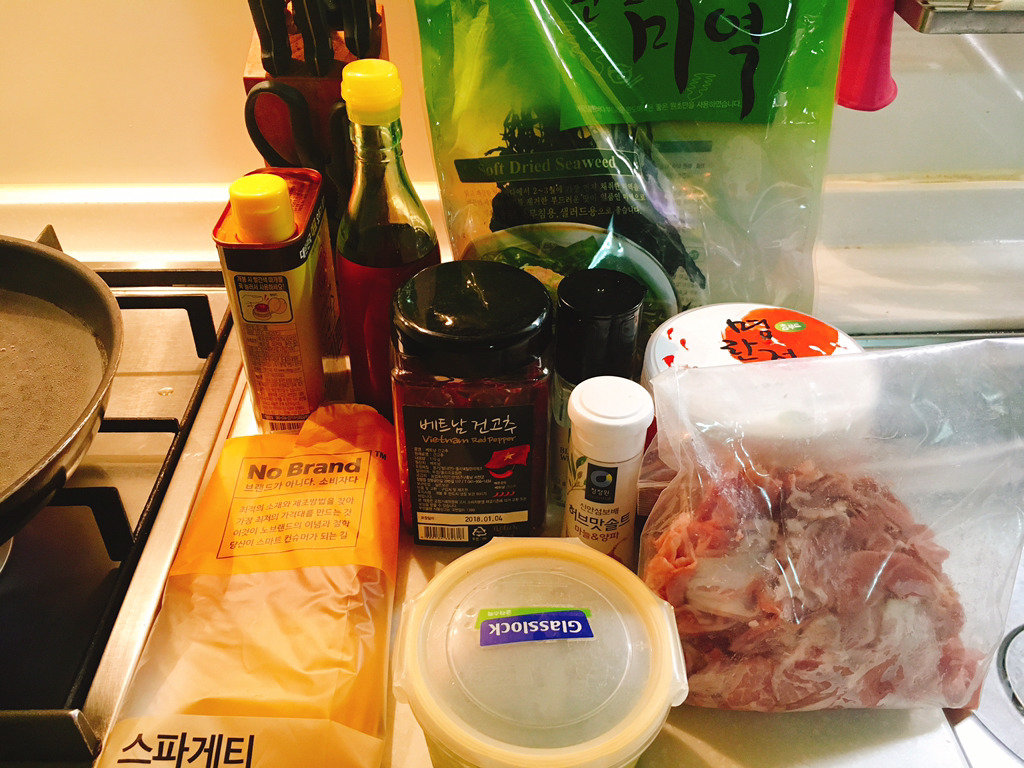 아녕~! 오늘은 내가 밥 해먹기 넘나 피로하고 간단하게 빨리 해먹을게 뭐 없을까 할 때마다 휘리릭 해먹는 미역국 파스타이댜~! 예전에 블랙스미스 처음 갔다가 미역국 파스타 먹어보고 반해서 그거만 먹으러 다님,,, 아닛,, 미역과 파스타라니 이 조합 넘나 꿀맛이쟈나여,,,