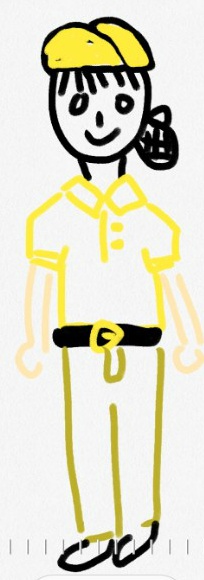 파트타이머는 노란색 반팔에 노란모자를 써