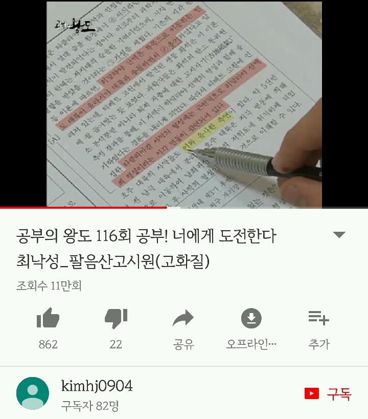 근데 저 영상에 나오는 학생은 정말 처절하게 공부하더라.