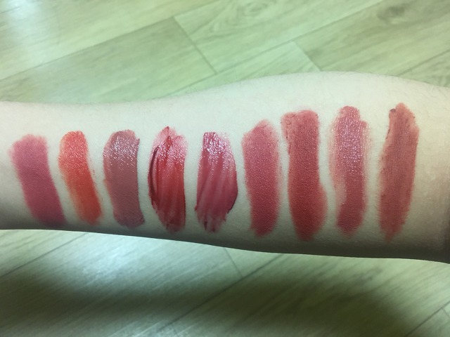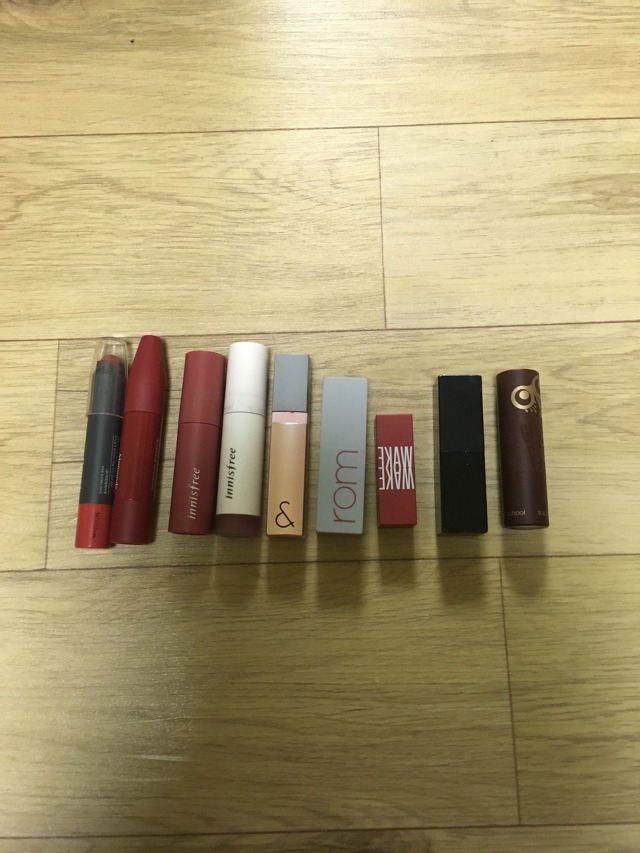 (마몽드 벨벳레드/마몽드 레트로 로즈/이니스프리 빛바랜 베이지튤립/이니스프리 반만 말린 가을홍시 /롬앤 쥬쥬브/롬앤 올댓재즈/웨이크메이크 미스터베이지/나스 제인/투쿨포스쿨 moderate)