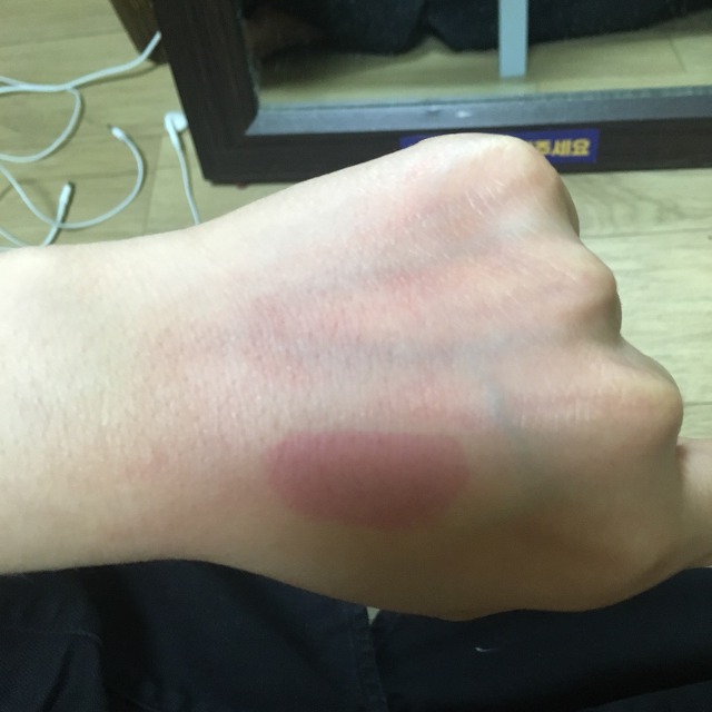 손등에선 약간 핑크빛이 많이 돌았는데, 입술에 바르면