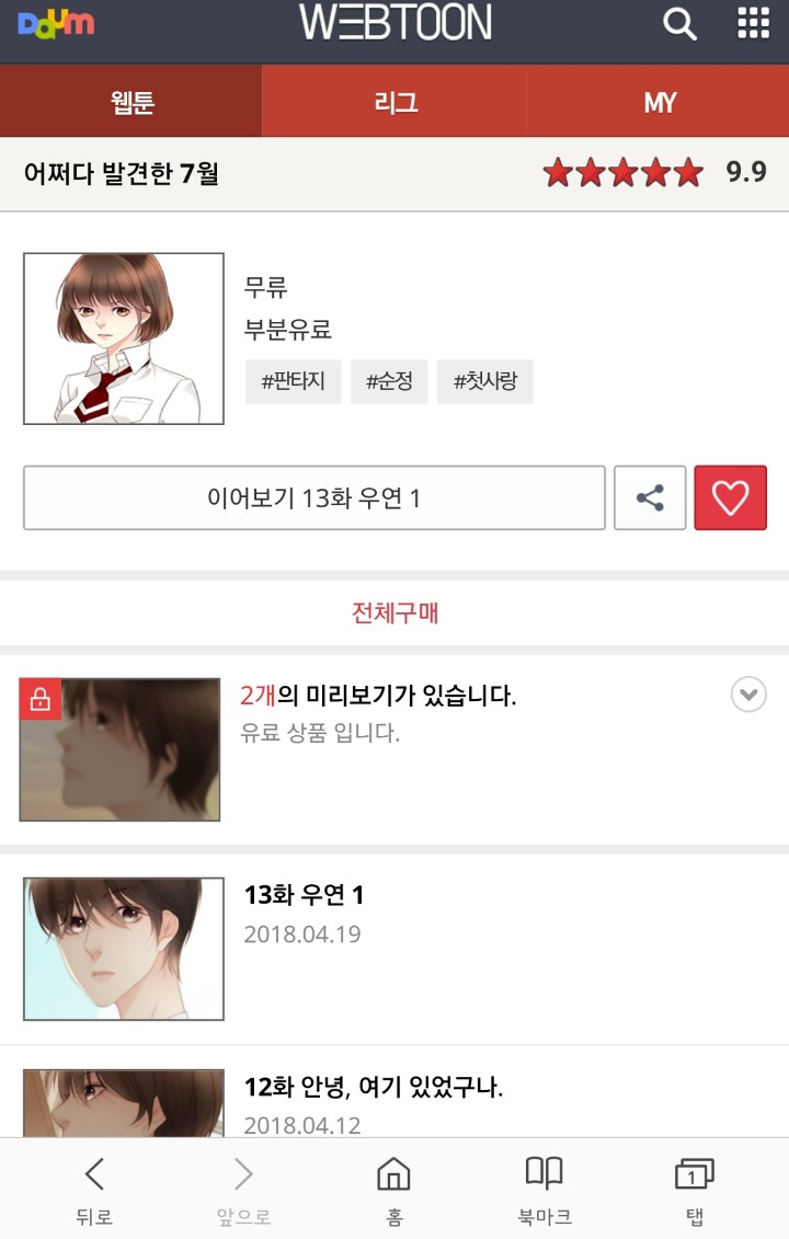 3. 어쩌다 발견한 7월 (다음웹툰 로맨스판타지섞인현대 🌟🌟🌟🌟)