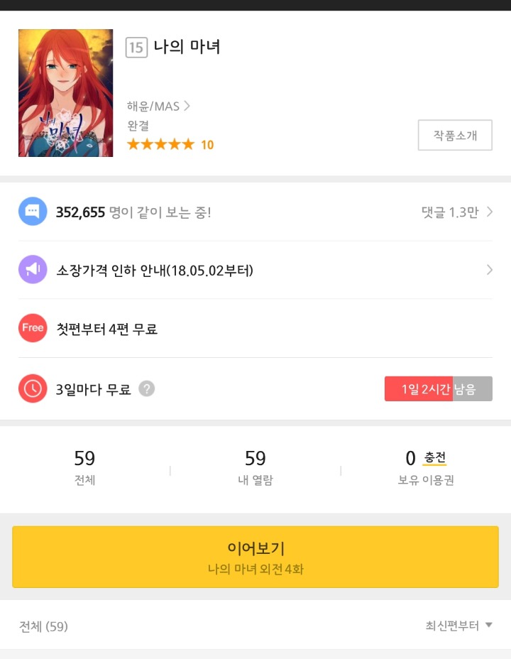 2. 나의마녀 (웹툰, 카카오페이지에서 봤음 )🌟🌟🌟🌟반