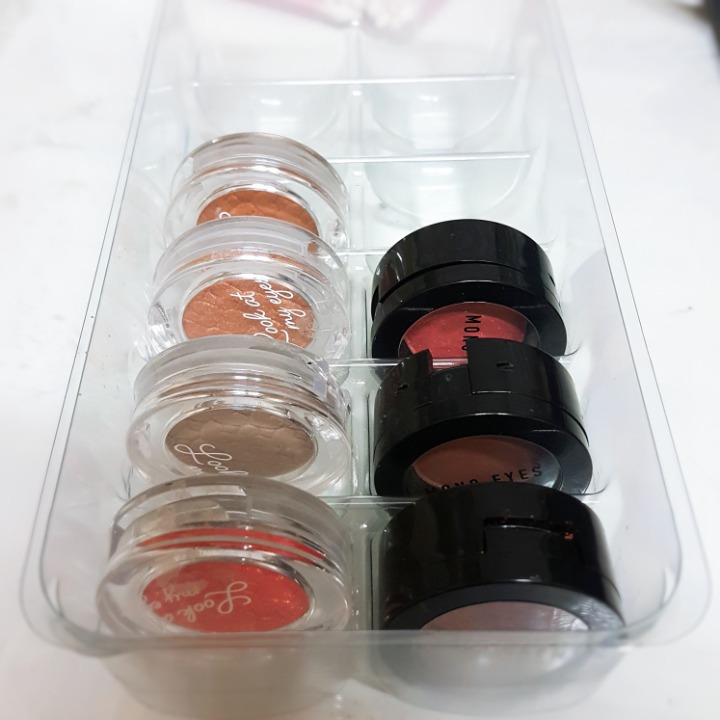 본체에는 알땀, 딱꿍에는 에뛰드 섀도우를 넣어 정리할수있고(딱꿍에 알땀도 가능) 동글이 섀도우는 다 가능한듯!!(사실 싱글섀도우가 많이 옶어요 ㅠㅠ 죄송합니다)