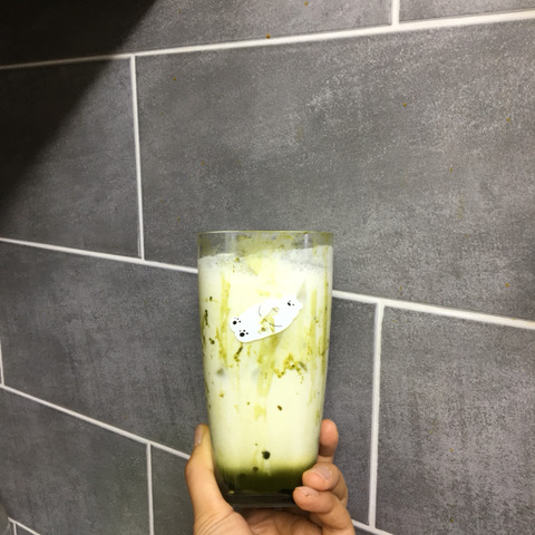 아이스를 넣고 차가운 우유를 넣으면 아이스 녹차라떼야!