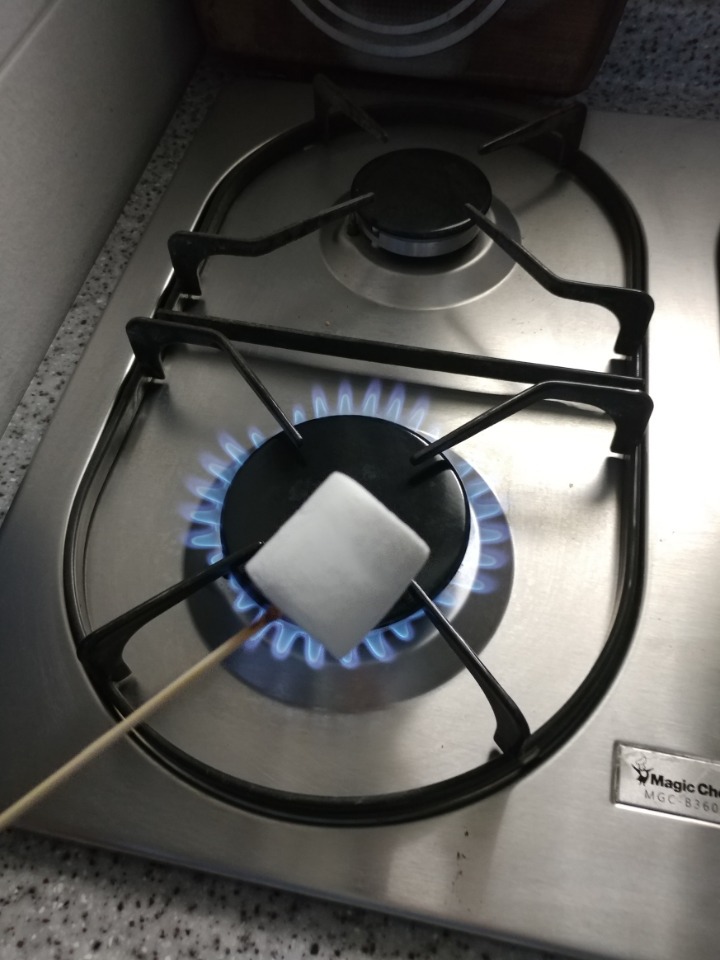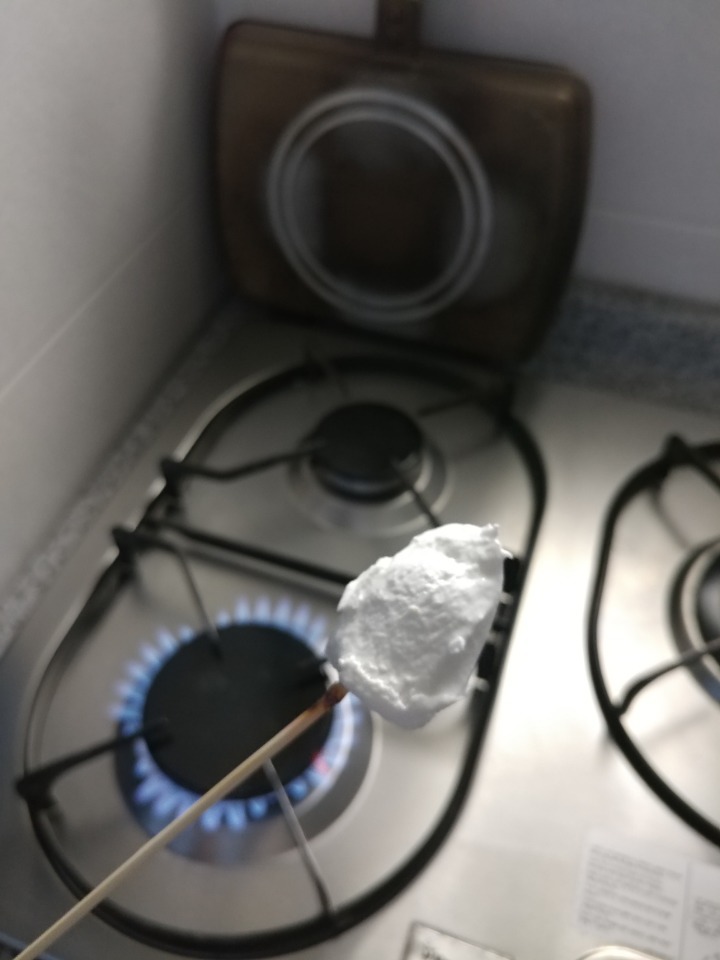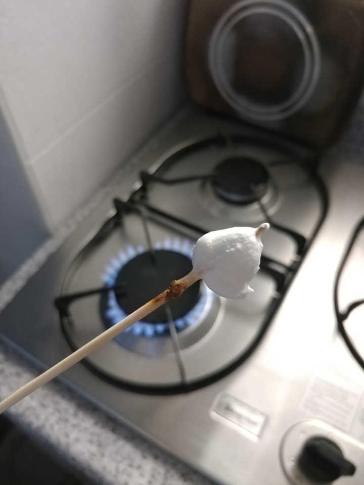 이렇게 마쉬멜로우를 꼬치에 꽂은 다음에