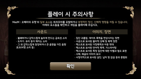 가스라이팅에 데이트 폭력 연상이라니...모바일 게임에서 이런 경고문구 받을 수 있을줄은 상상도 못했어. 고딩때 오페라의 유령 로맨틱하다는 애들도 많았는데 이 게임은 오페라의 유령을 로맨틱하게 묘사하지 않고 이야기 전개에서도 가스라이팅과 데이트 폭력을 미화없이 다루고 있어. (남주는 좀 로맨틱한듯?)