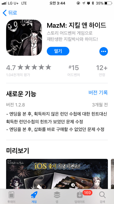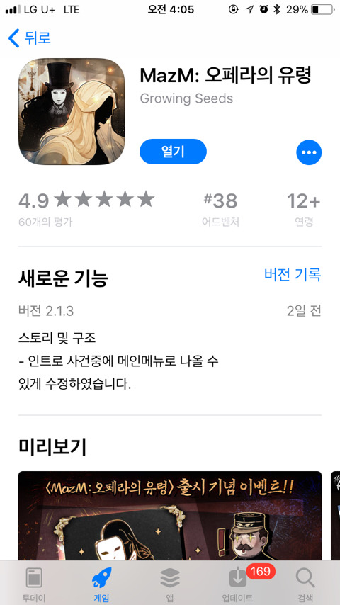홍보가 덜돼서 그런지 오페라의 유령은 앱스토어 순위에도 없고 리뷰도 많이 없더라ㅜ 근데 전작도 개존잼이지만 난 개인적으로 오페라의 유령이 더더재밌어!!!!다들 꼭꼭 해보길 바래 그럼 좋은하루💕💕💕