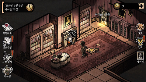 이렇게 물건이나 사람 근처로 가면 아이콘이 뜨는데 이걸 누르면 힌트를 얻거나 내용전개가 이뤄져. 스토리 진짜 탄탄해서 몰입도도 좋고 어거지로 맞추는 추리도 없는 것 같아.