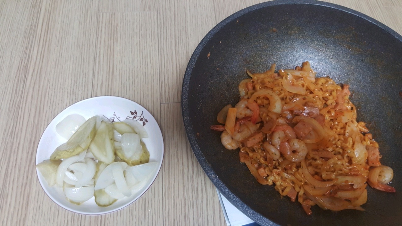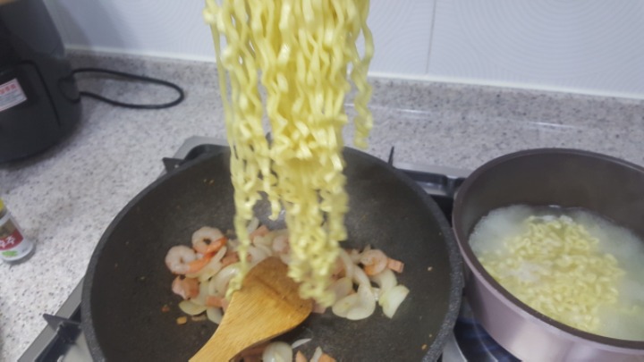 볶는동안 다른 냄비에 면 끓여야함