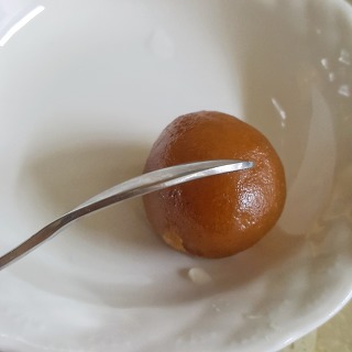 '분유를 반죽하여 동그랗게 만들어 튀긴 다음 시럽을 뿌려 달곰하게 만든 인도 전통요리'
