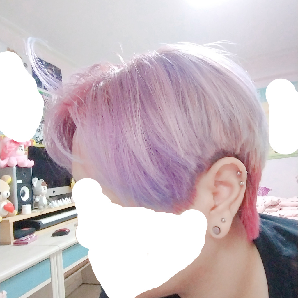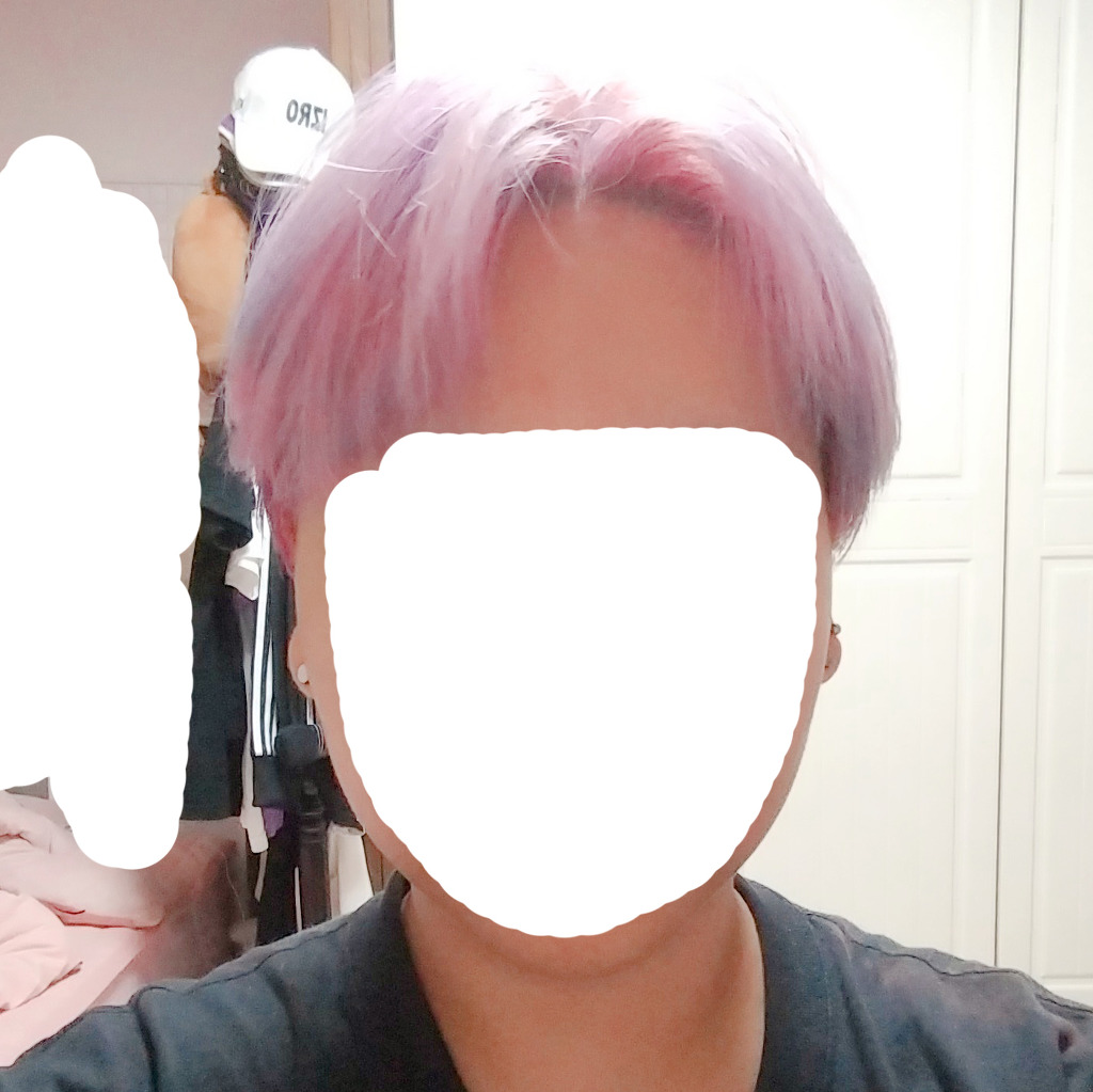 머리색은 백금발인 상태에서 미장센 헬로 컬러 트리트먼트 더스티 애쉬랑 딥브로도 로즈를 2:1 비율로 섞어서 한거야!