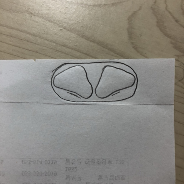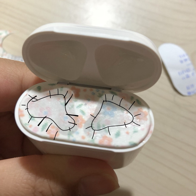 이 방법은 인터넷에 에어팟 도안대로 출력해서 자르는게 있는데 그건 프린터기가 없으면 못하기도 하고 번거로우니까 생각한거야! (근데 난 마테가 좀 흐물대는 재질이라서 별로였는데 참고해줘!)
