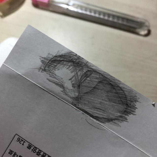 👇2. 종이를 빼면 이렇게 자국이 남는데, 펜으로 그 선을 따라 그려준다