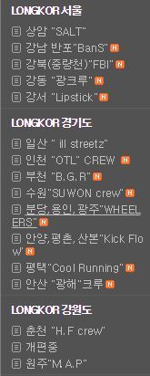 롱보드코리아에 각크루게시판이 있는데 이런식으로있어
