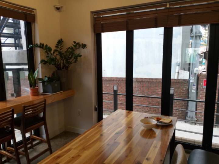여기서 아침 먹을 수 있고 아침 시간외에도 이 공간을 사용할 수 있어!