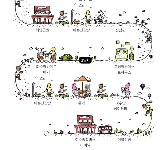 위에 있는 경로에서 2일차 이순신광장과 진남관은 사실 이 축제에서 걸었던 길을 표시한거야!